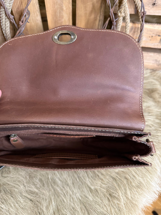 Western Cowhide Hand Tooled Leather with Fringe Crossbody Bag, Dusty Trails Bag