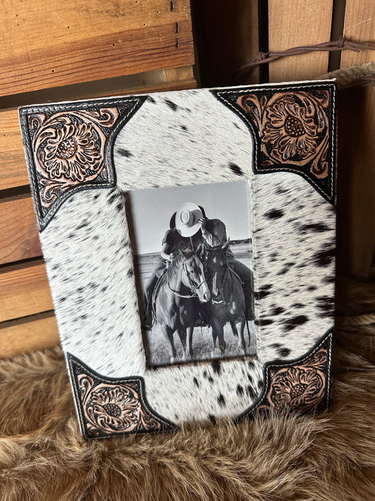 Custom Branded Cowhide and Tooled Leather Photo Frame, Western Picture Frame