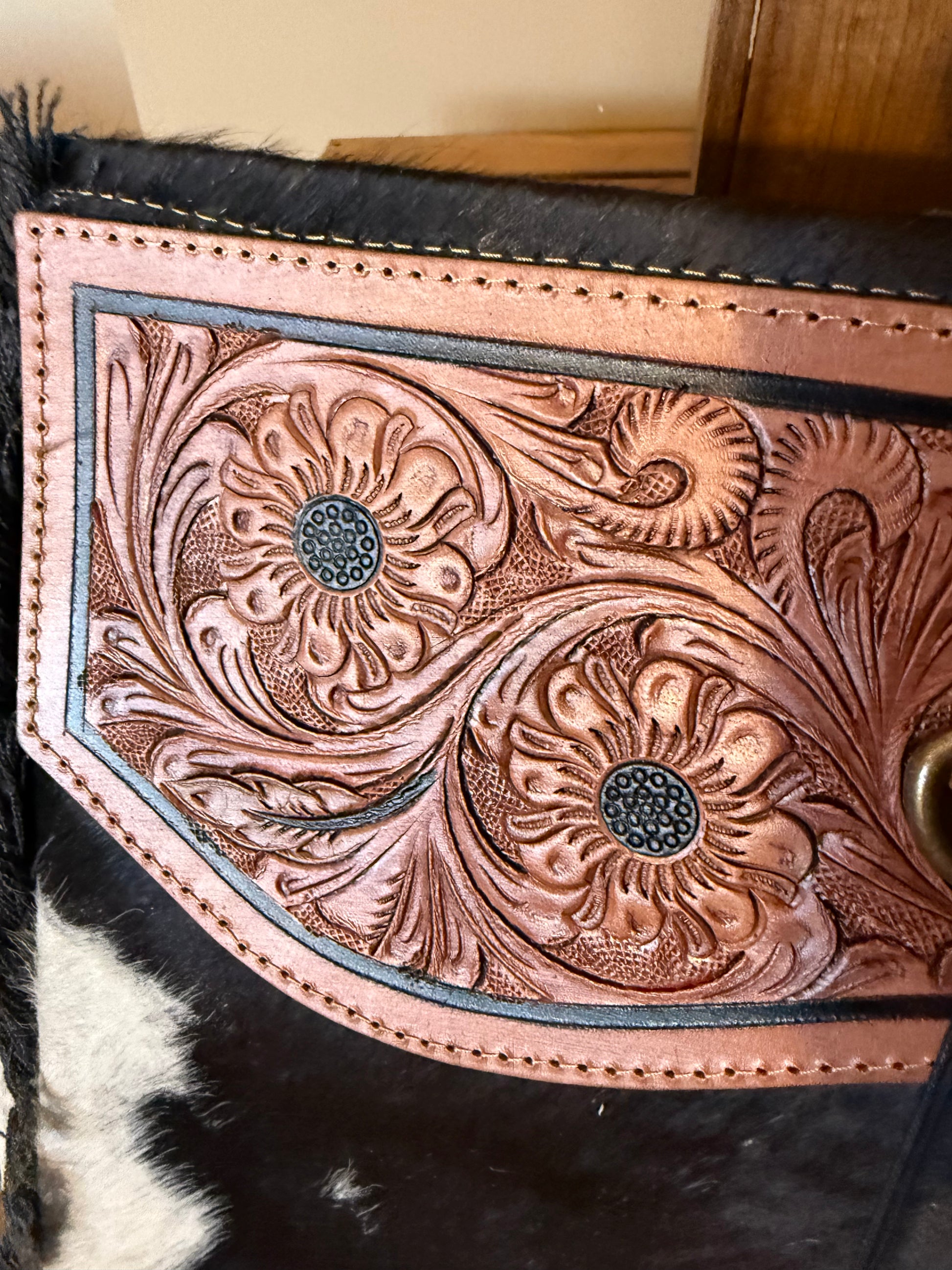 ❤️Real Tooled Leather Accents and Cowhide
